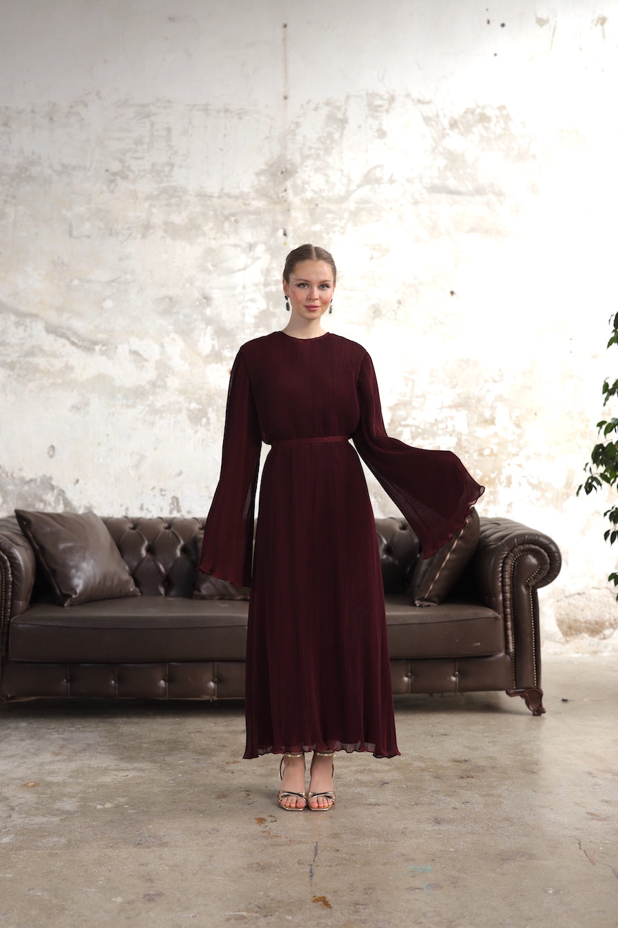Piliseli Elbise Bordo