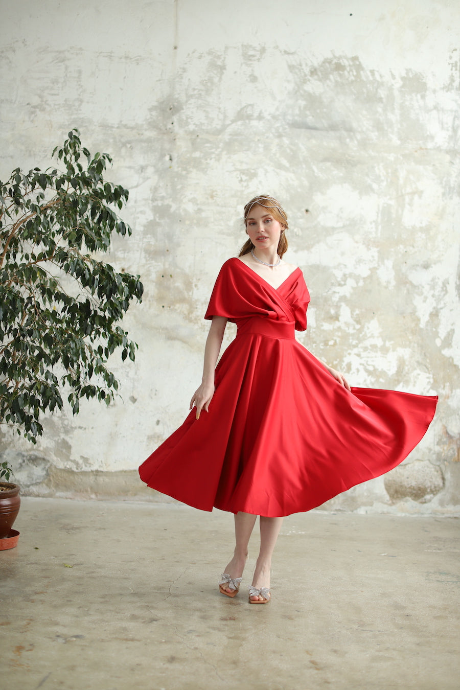 Robe Rose Taille Midi Rouge Claret 20255