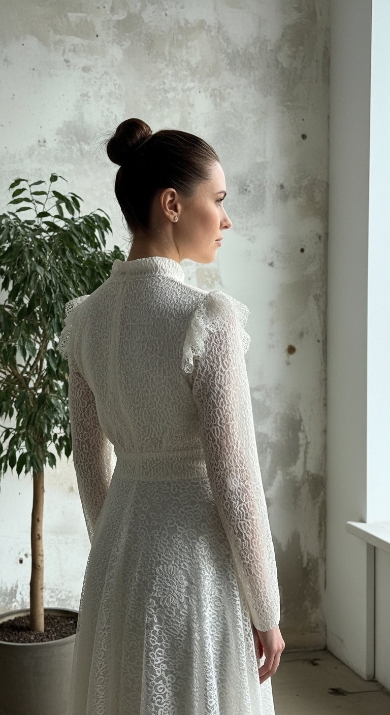Masalsı bir görünüm arayanlar için tasarlanan bu eşsiz parça, romantik dantel dokusunu modern terzilik detaylarıyla birleştiriyor. İster kendi nikah seremoninizde ister en prestijli davetlerde, bu elbise size eforsuz bir asalet sunuyor.