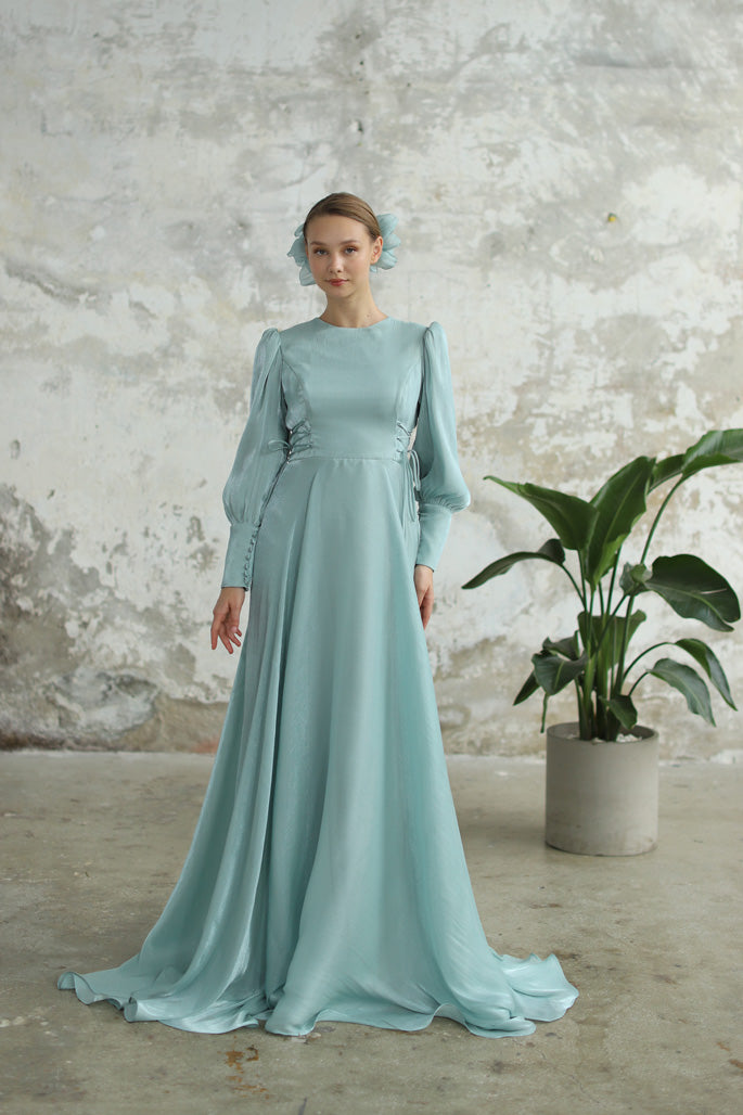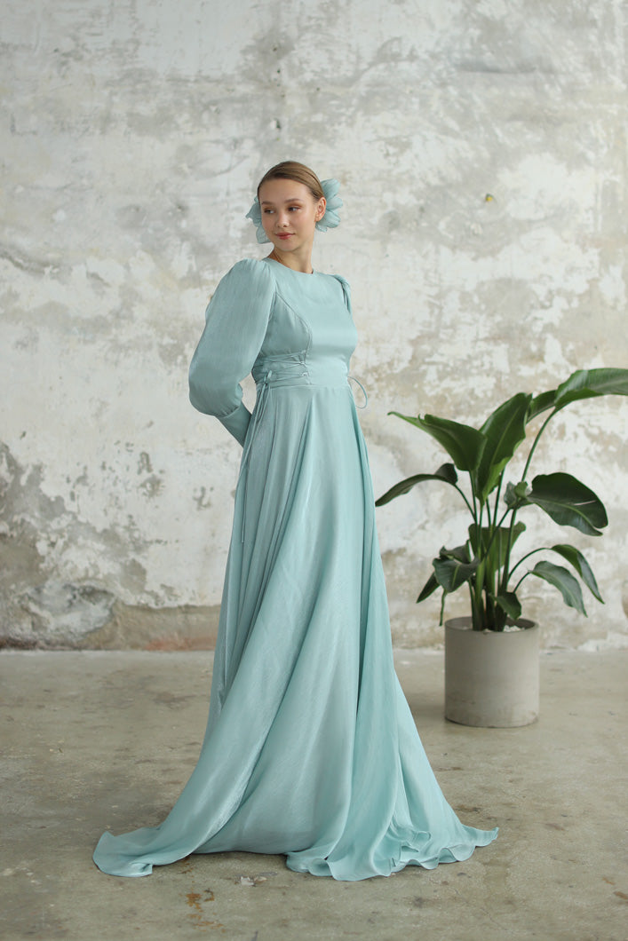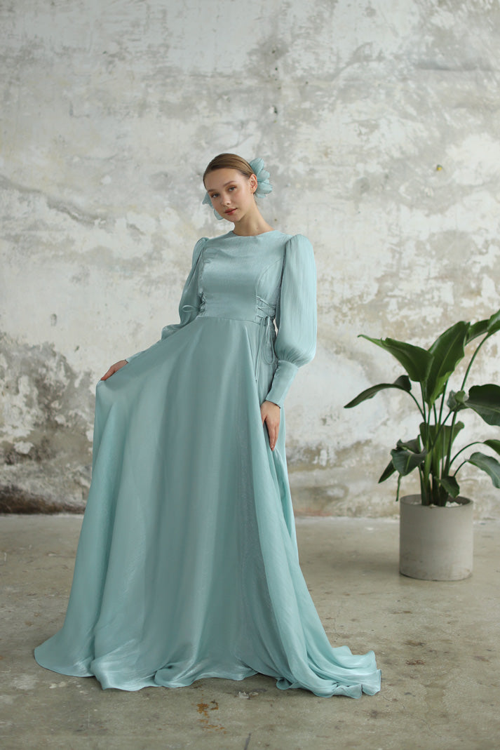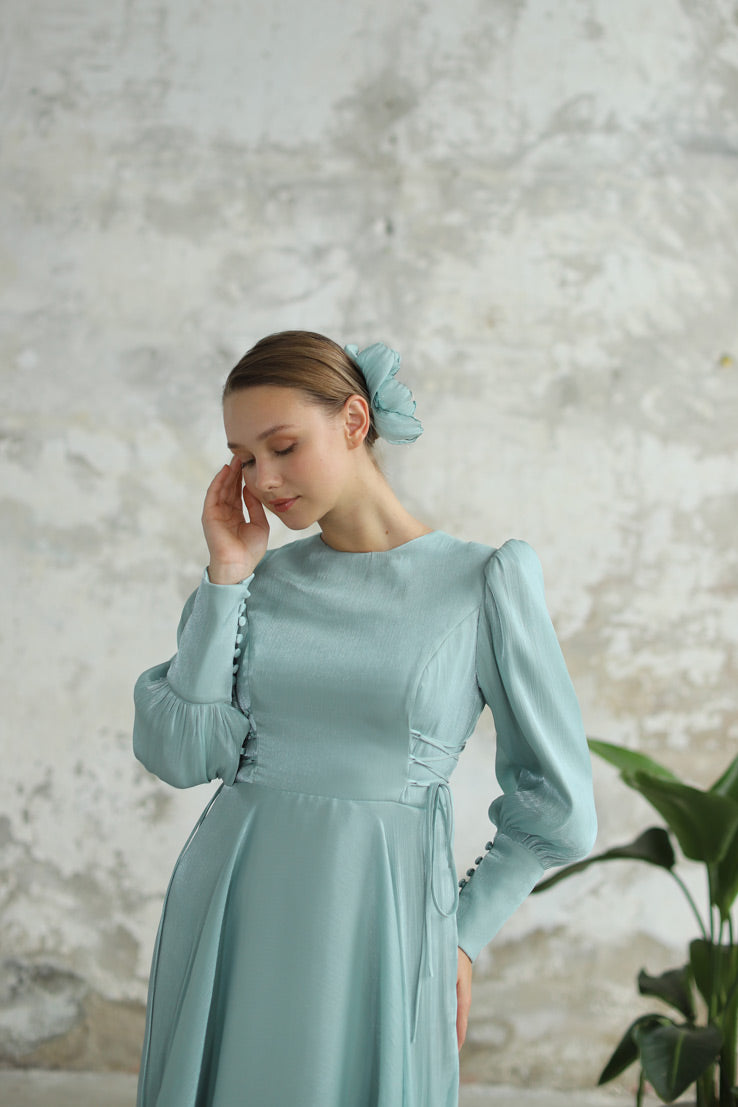 Bağcık Detaylı Şık Elbise Su Yeşili