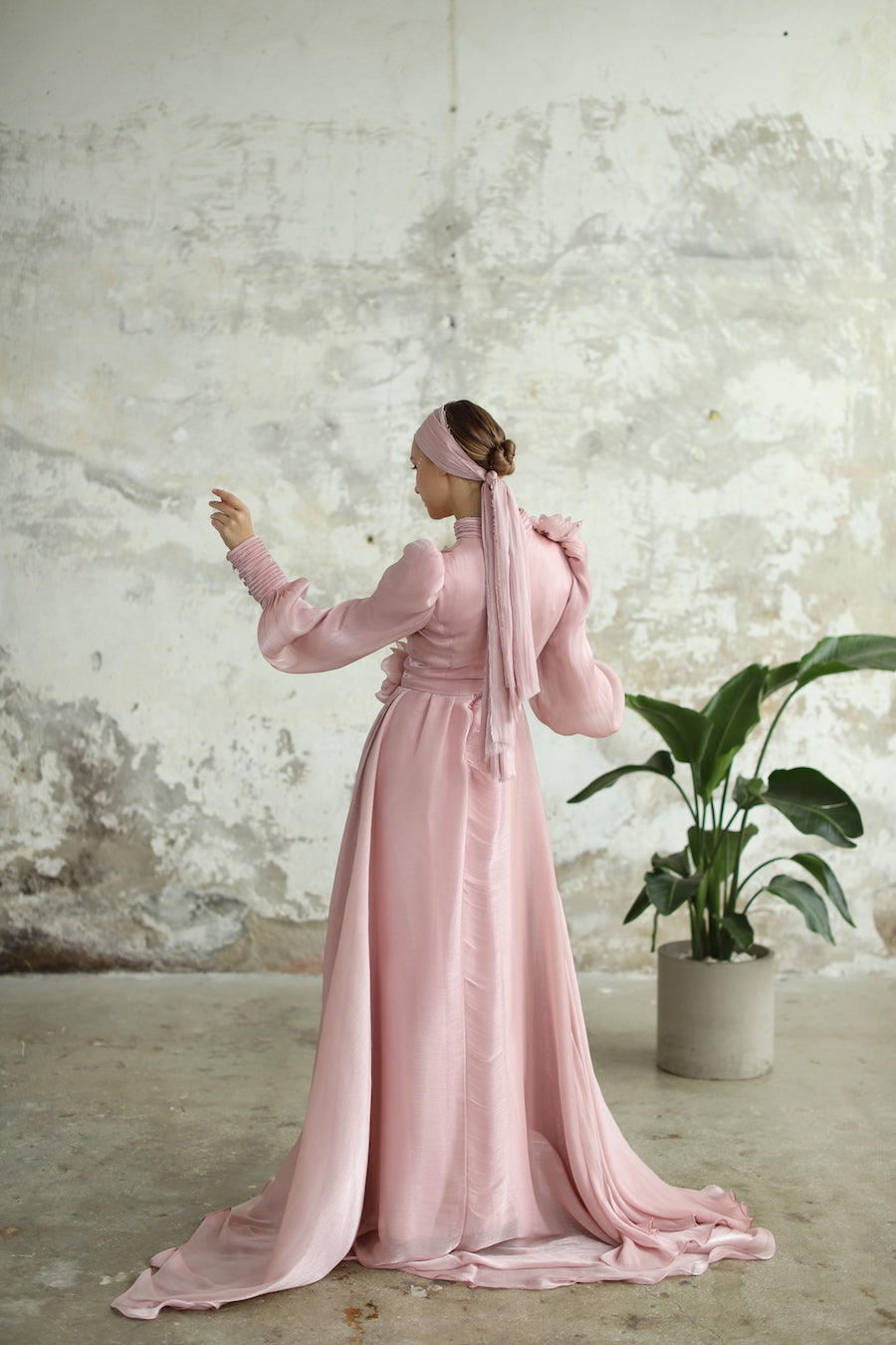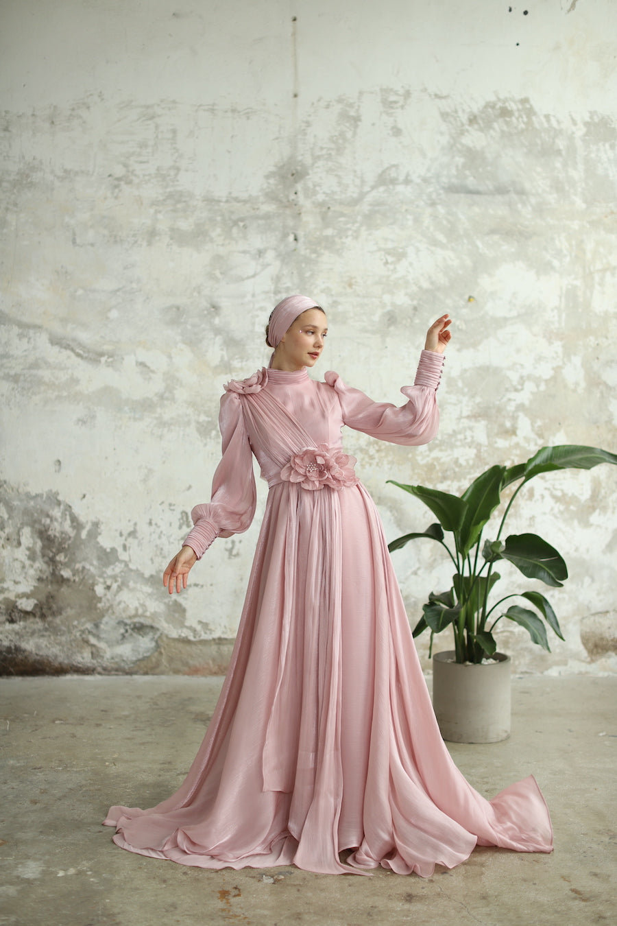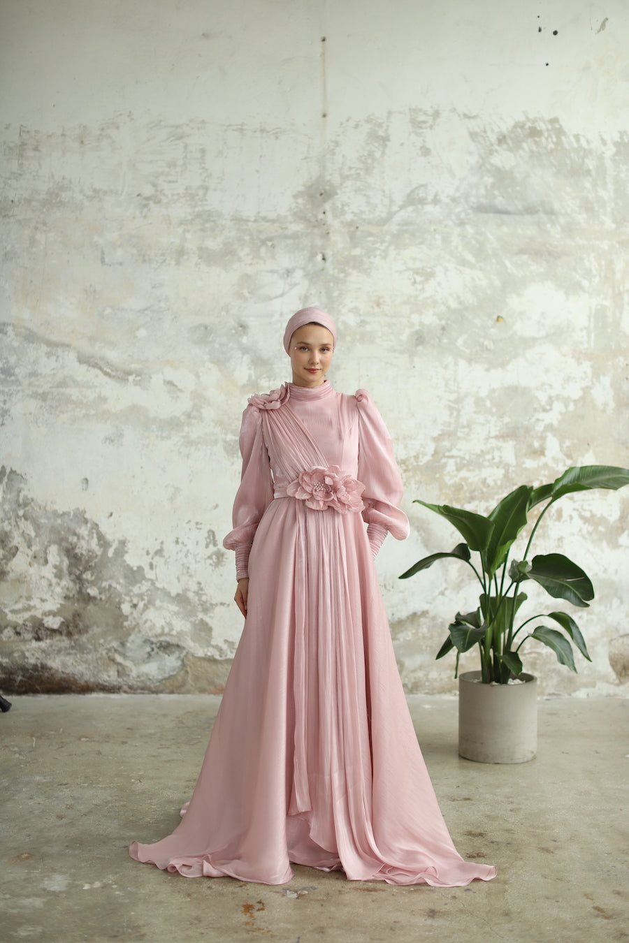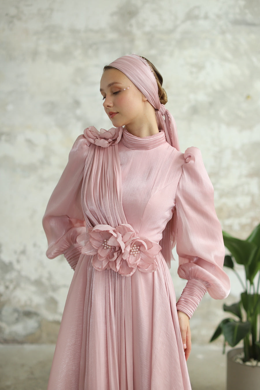 Çiçek Detaylı Manolya Elbise Pudra