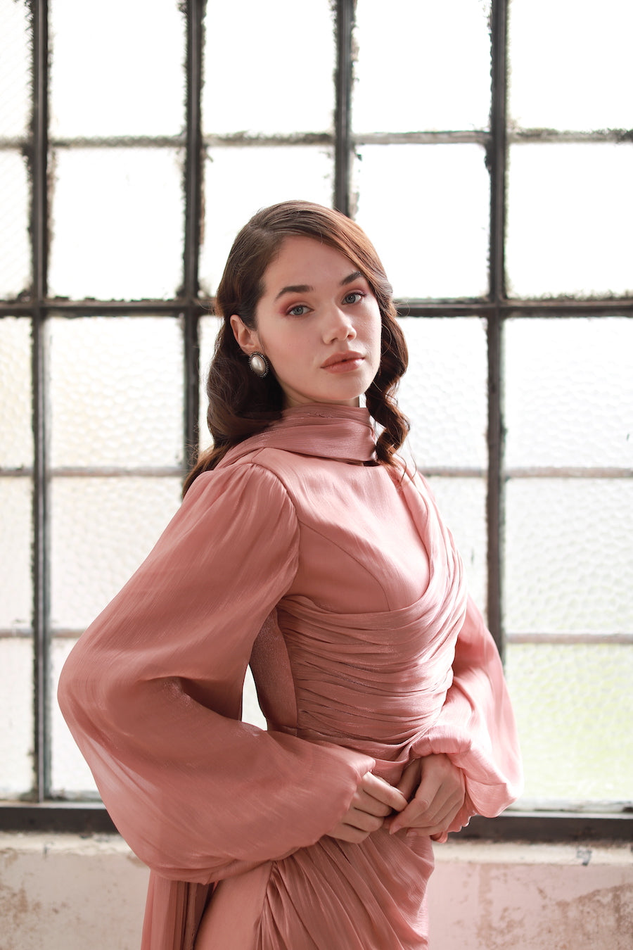 Drape Detaylı Elbise Bakır 20251