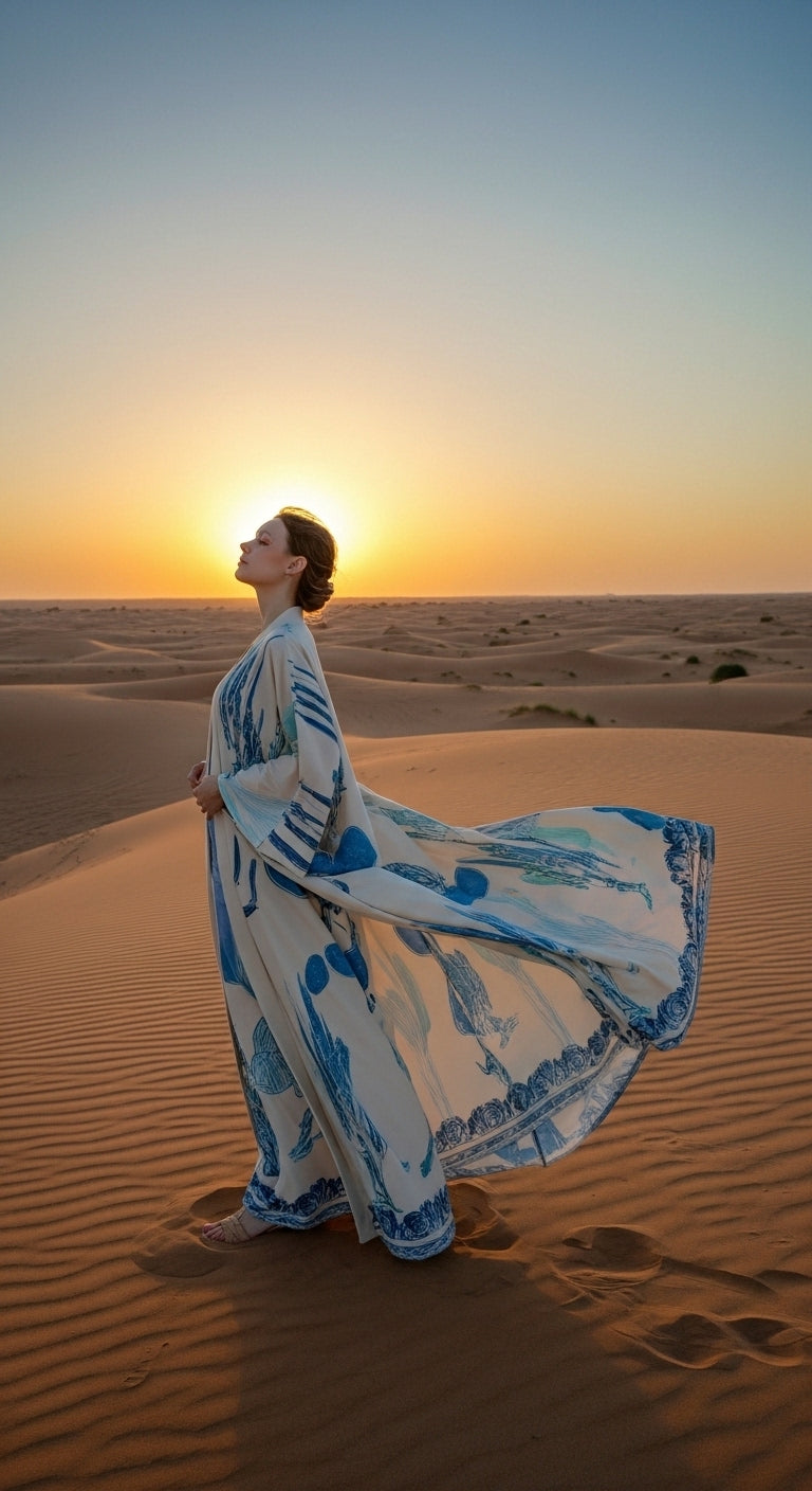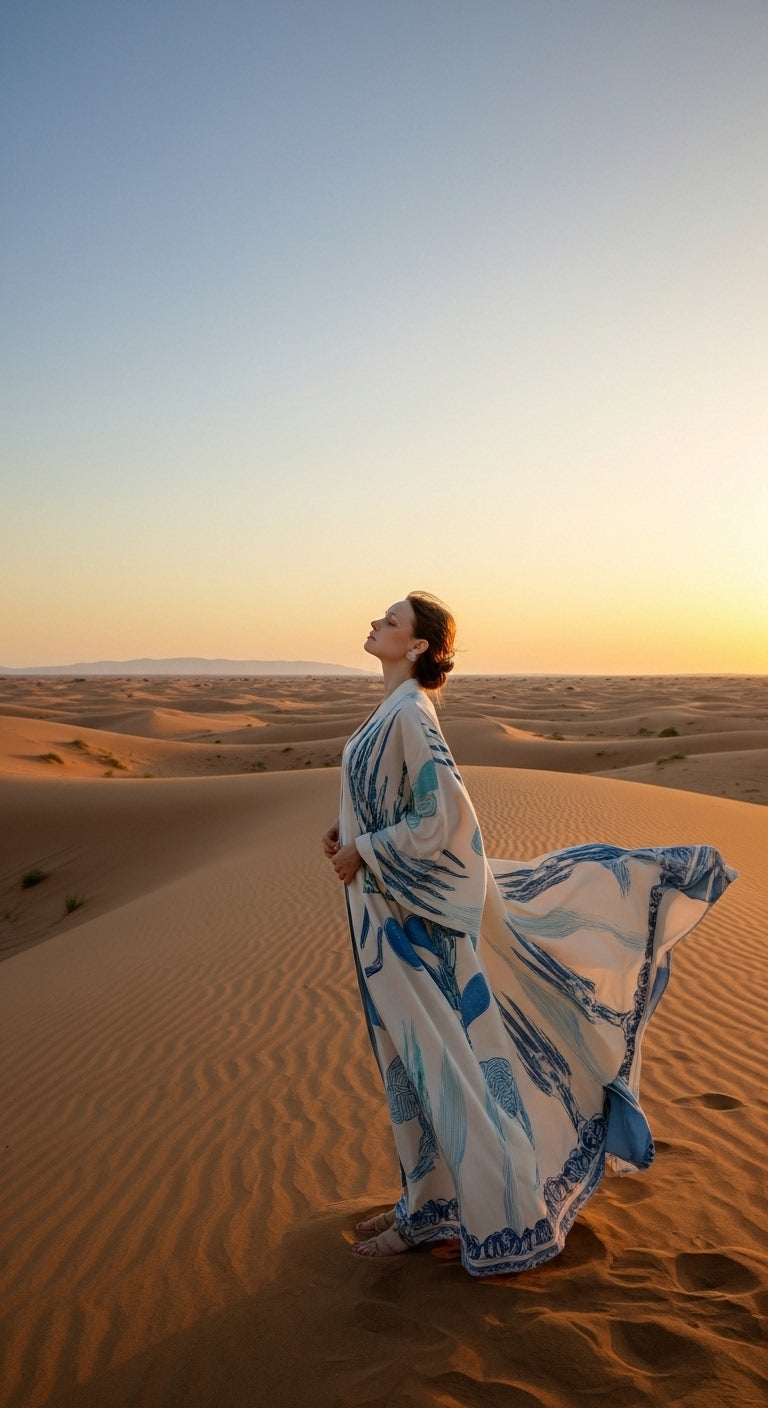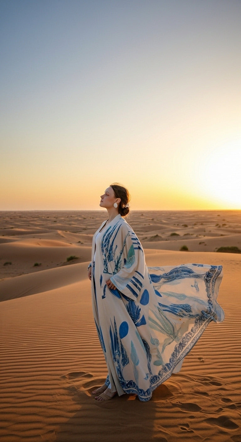 Doğallığın zarafetle buluştuğu Keten Karışımlı Kaktüs Desenli Kimono, stilinize sanatsal bir dokunuş katıyor. Üzerindeki mavi tonlu kaktüs desenleri ve özel el işlemesi detaylarıyla, her ortamda fark edilmenizi sağlayacak eşsiz bir parça.